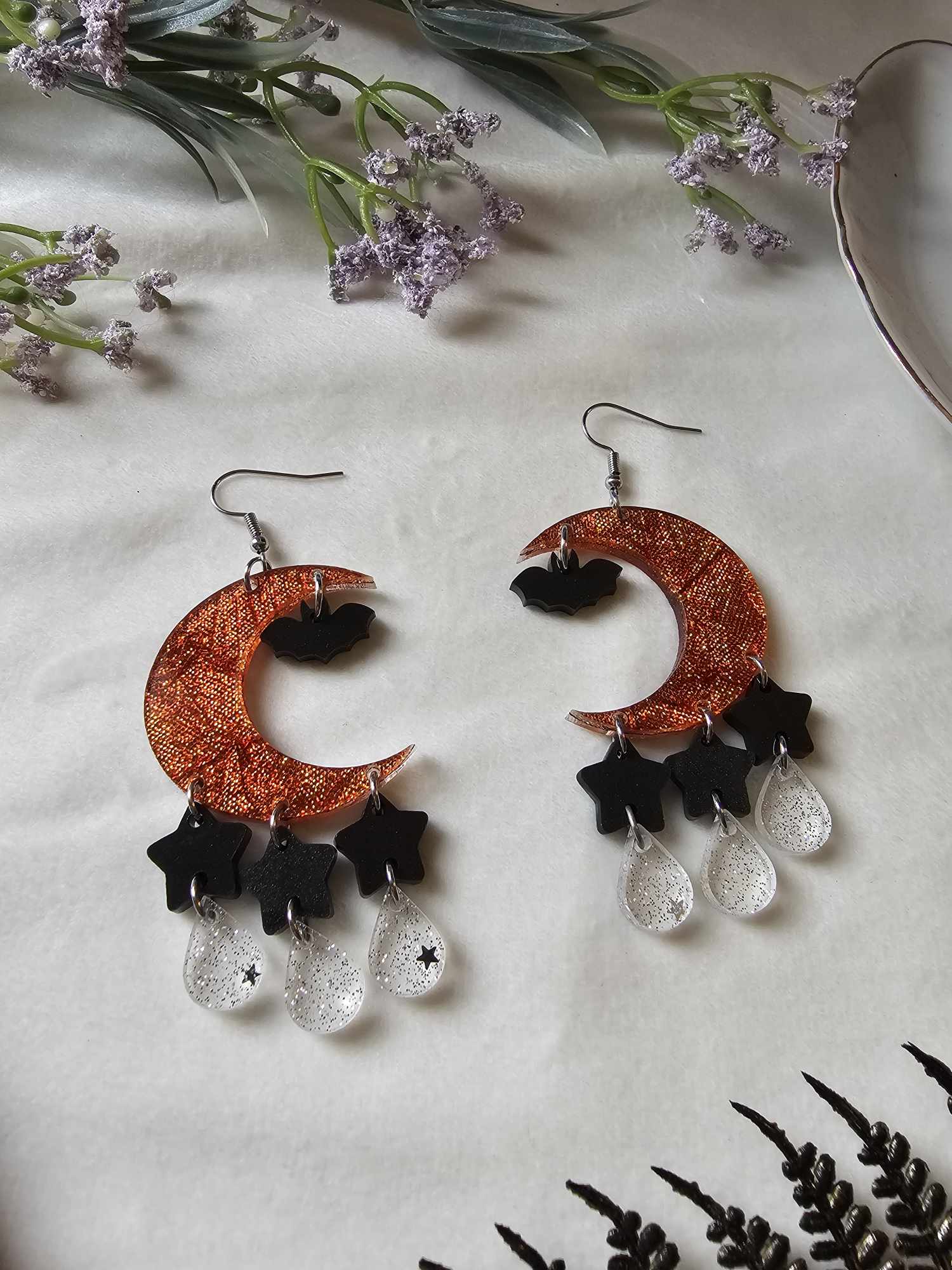 An amber shimmer acrylic (photos do NOT do this acrylic justice!) with black & clear glitter drops. Perfect for halloween & spooky season.