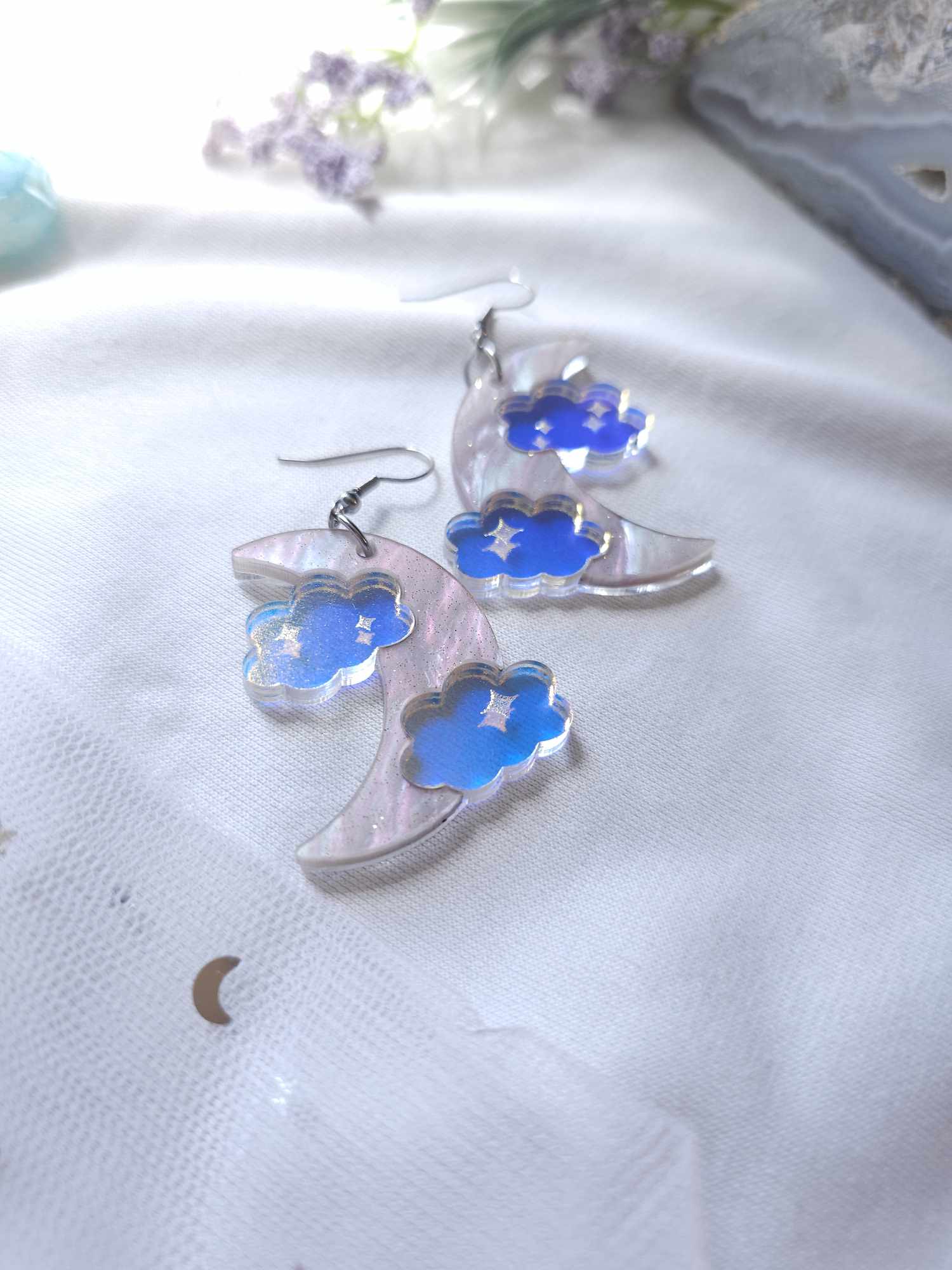 The prettiest wildflower marble acrylic earrings with frosted iridescent clouds.