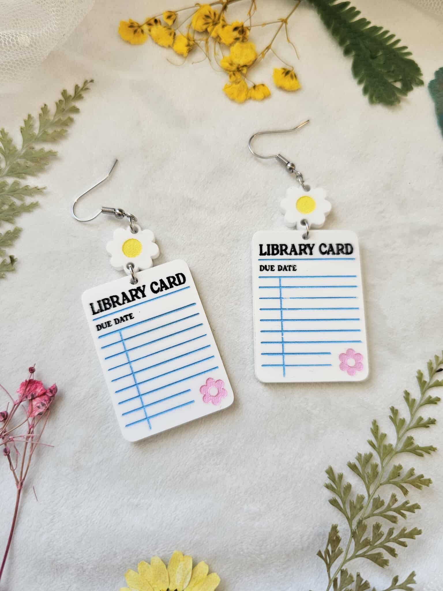 These cute library card earrings are made with white laser cut acrylic with hand painted details! These earrings are perfect for librarians, book store owners, or just readers!
