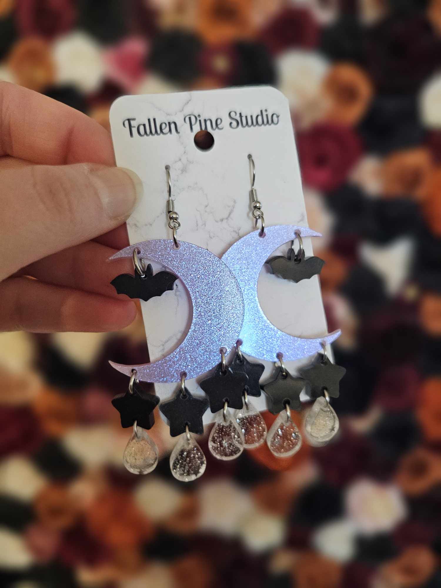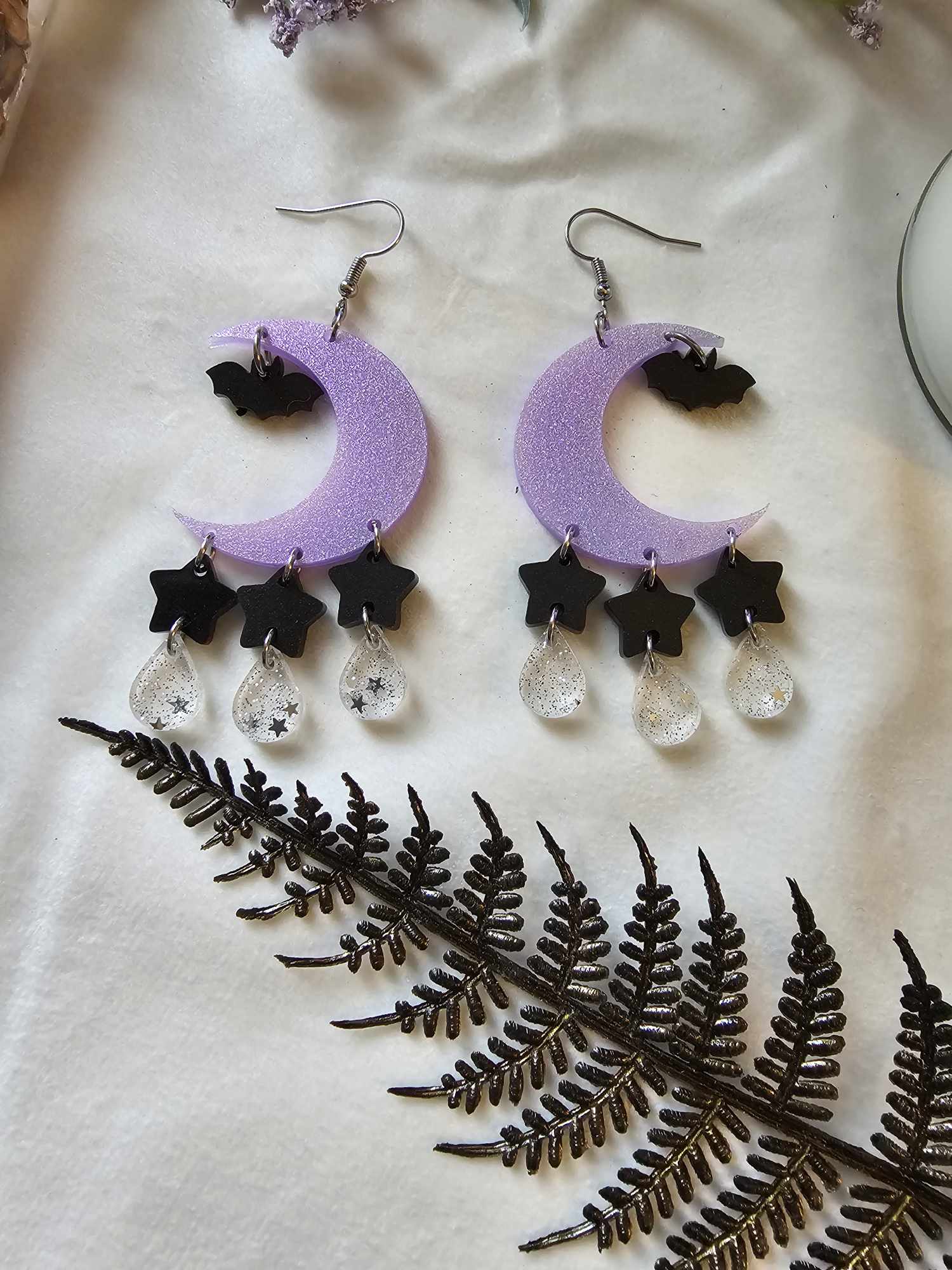 A color shifting purple shimmer acrylic with black & clear glitter drops.