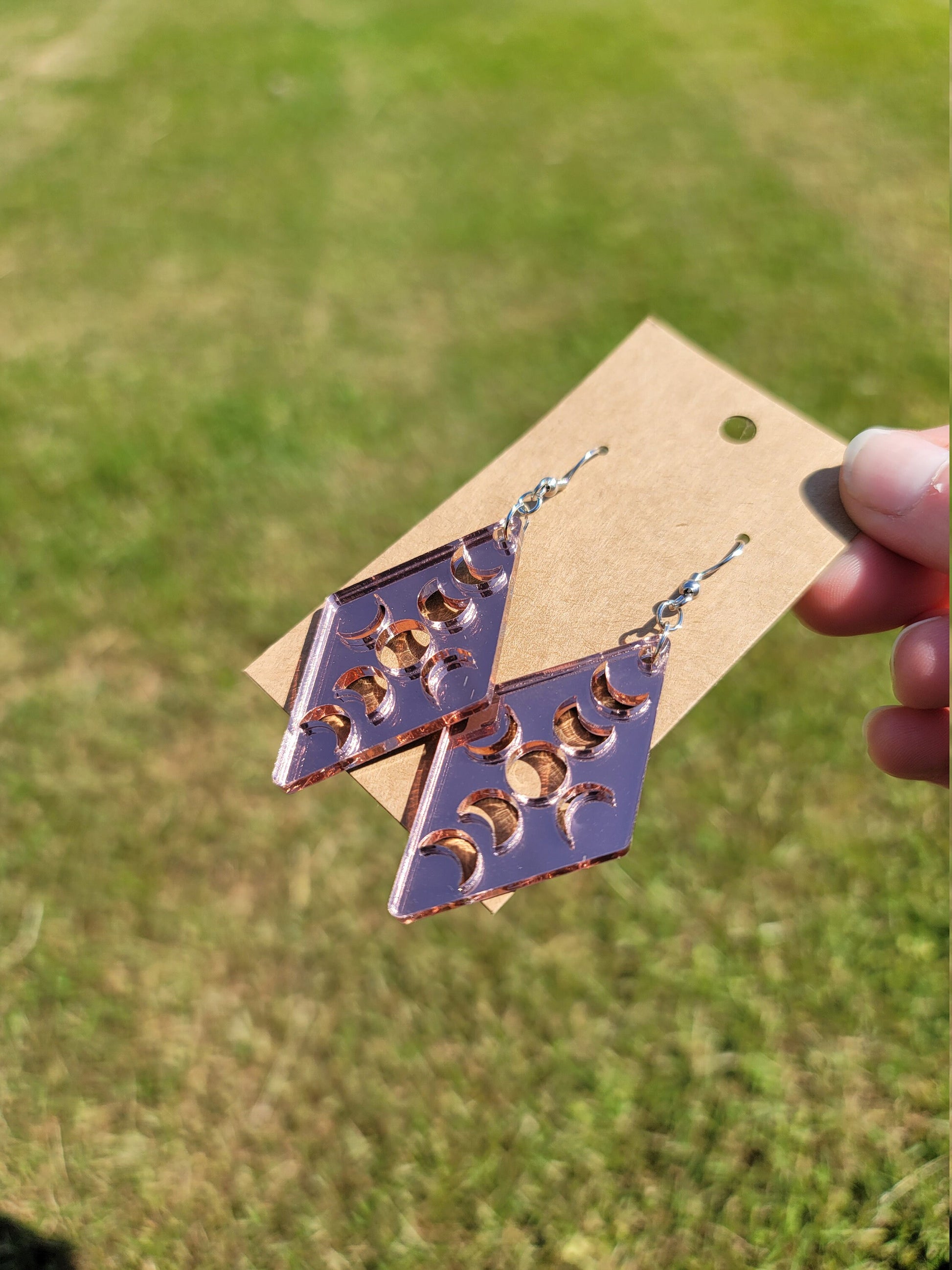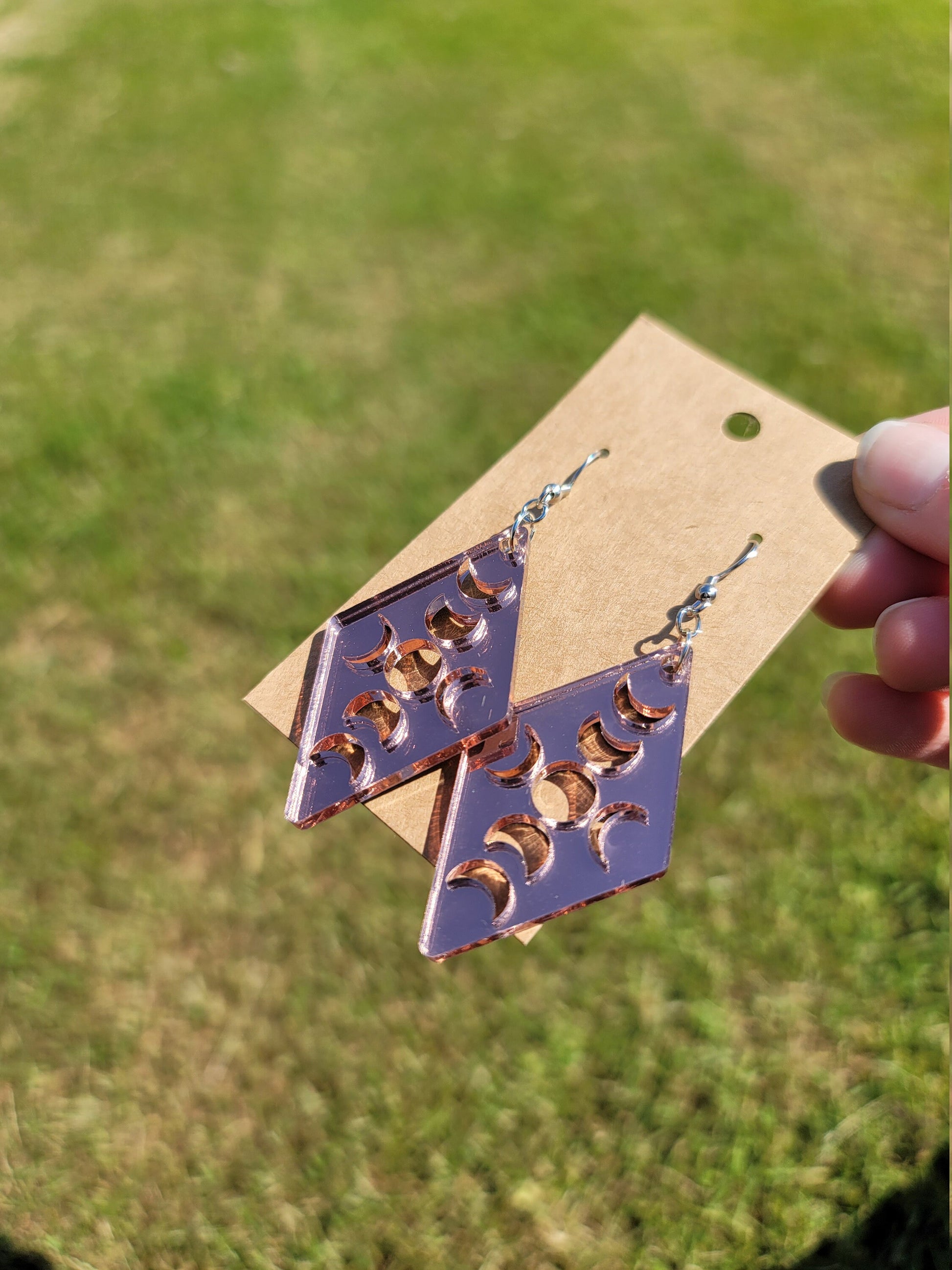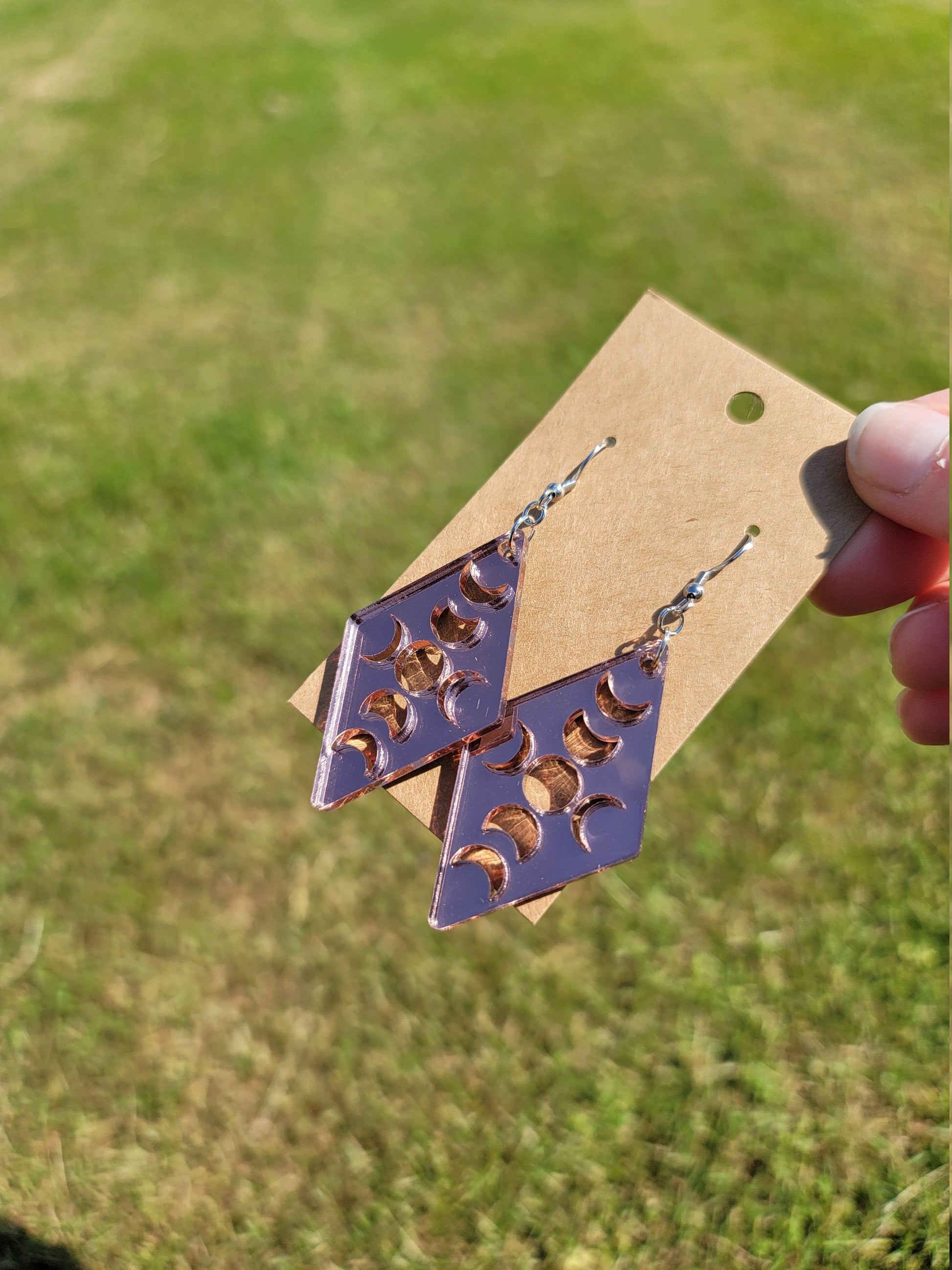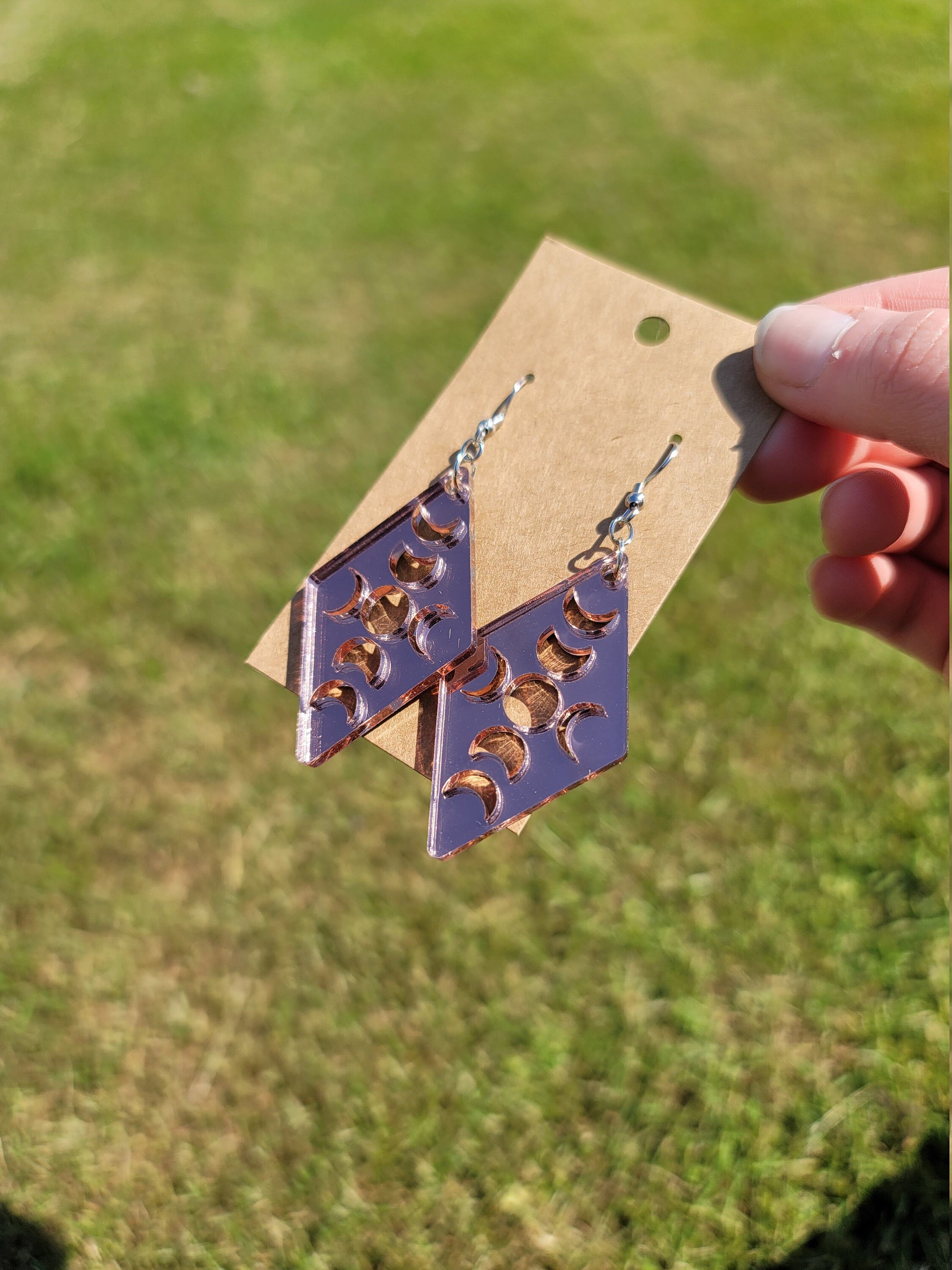 This listing is for a pair of gorgeous rose gold mirror acrylic moon phase laser cut earrings.