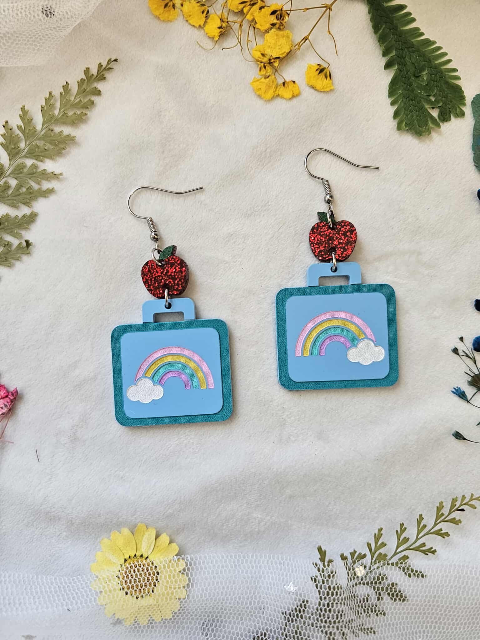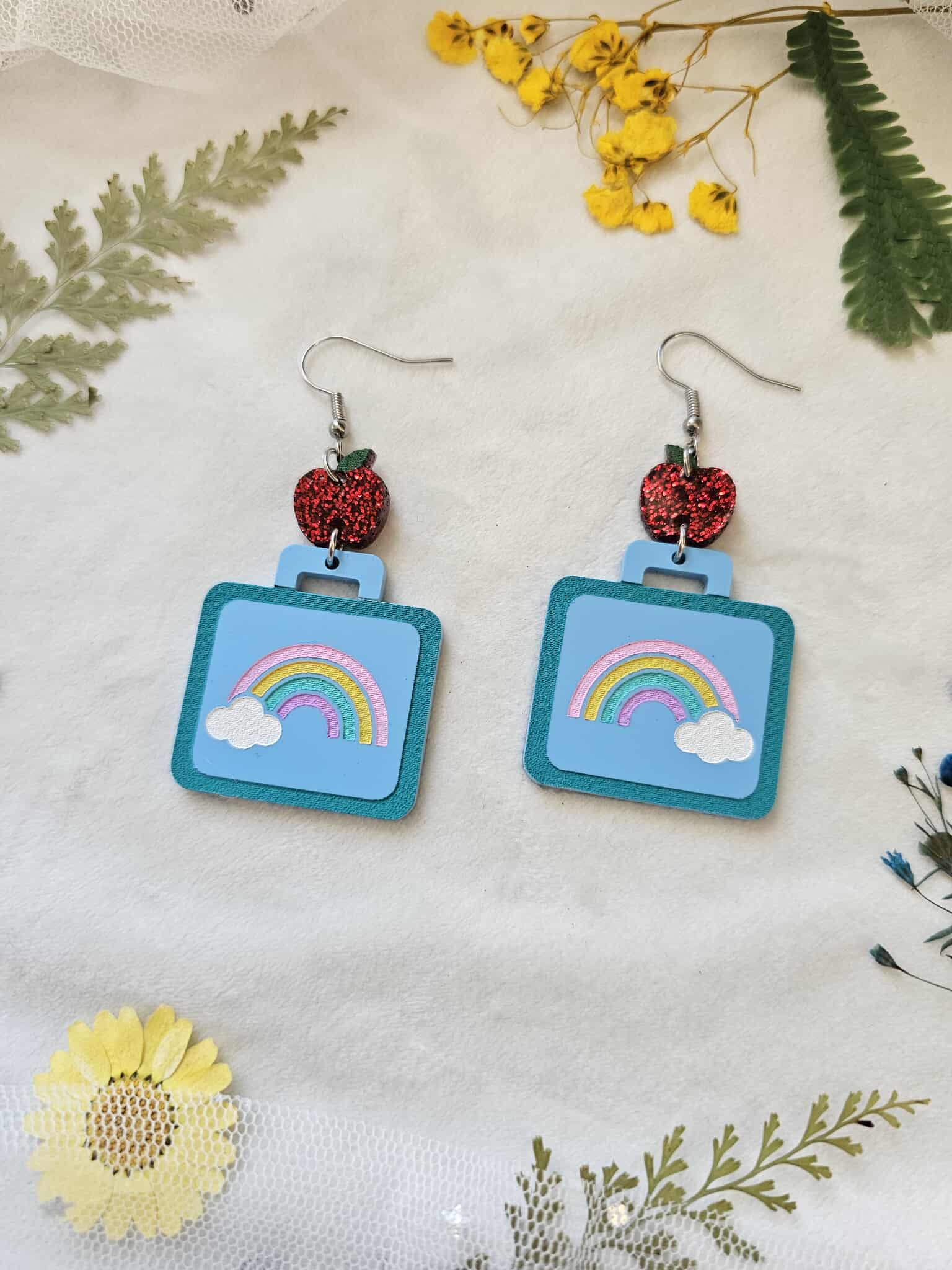 Matte blue acrylic with hand painted details and a red glitter apple!